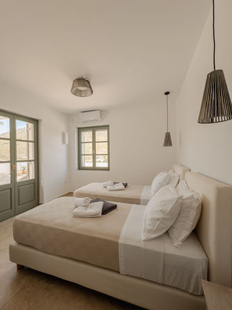 Welcome to our spacious and magnificent apartment in Patmos, the crown jewel of our newly built traditional guest house. Perfect for couples, friends, or families, it comfortably accommodates up to 6 guests. The space features 2 main bedrooms, 2 bathrooms, a fully equipped large kitchen with dining table, a spacious terrace with dining area and sunbeds, combined with an outdoor lounge area under the pergola that offers shade and coolness. Ensuring to provide breathtaking sea and landscape view, for unforgettable sunrise & sunset memories, promise to ensure an unforgettable stay.